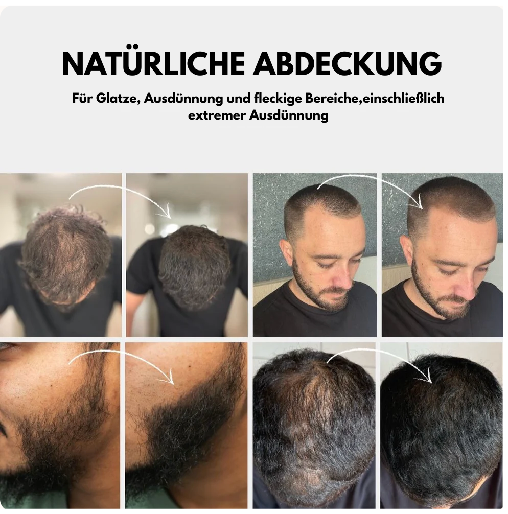 Das Ergebnis: sofort voller, dichter und natürlicher Haaransatz , der auch bei Wind, Regen oder Sport hält.